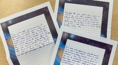 For our Wider Curriculum, we have been mixing colours to create tonal swatches, practising using a range of mediums to design the look and texture of their 'newly discovered planet. Next week, we will be looking at creating the background, producing nebulas and star clusters. In PE, Mrs Hillman has taught a range of yoga poses and I was lucky enough to see them put the poses together as a 'flow'. In PSHE, we have thinking about our hopes and dreams and what kind of world we want to live in and in French phonics, Chaipel have been learning the alphabet, how French primary school systems work and how different they are from English schools.