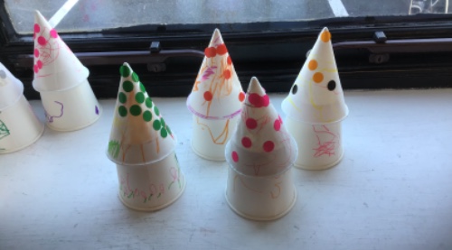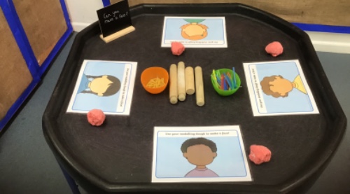 The children have been busy drawing and creating pictures of their family and who lives in their house in order to make a mobile. They have made paper cup houses and played in the firefighter themed tuft tray. We have enjoyed using play dough to make different faces.